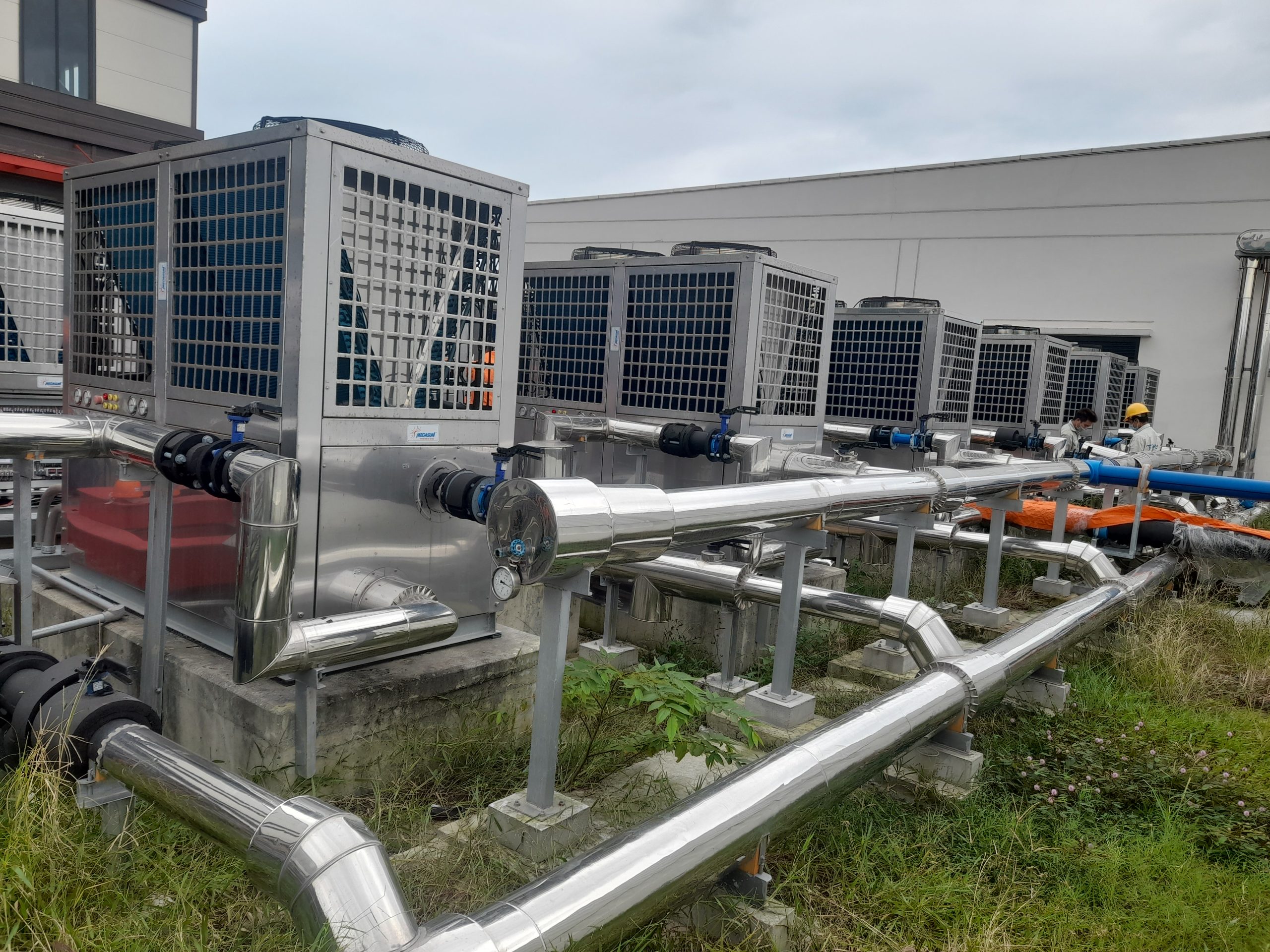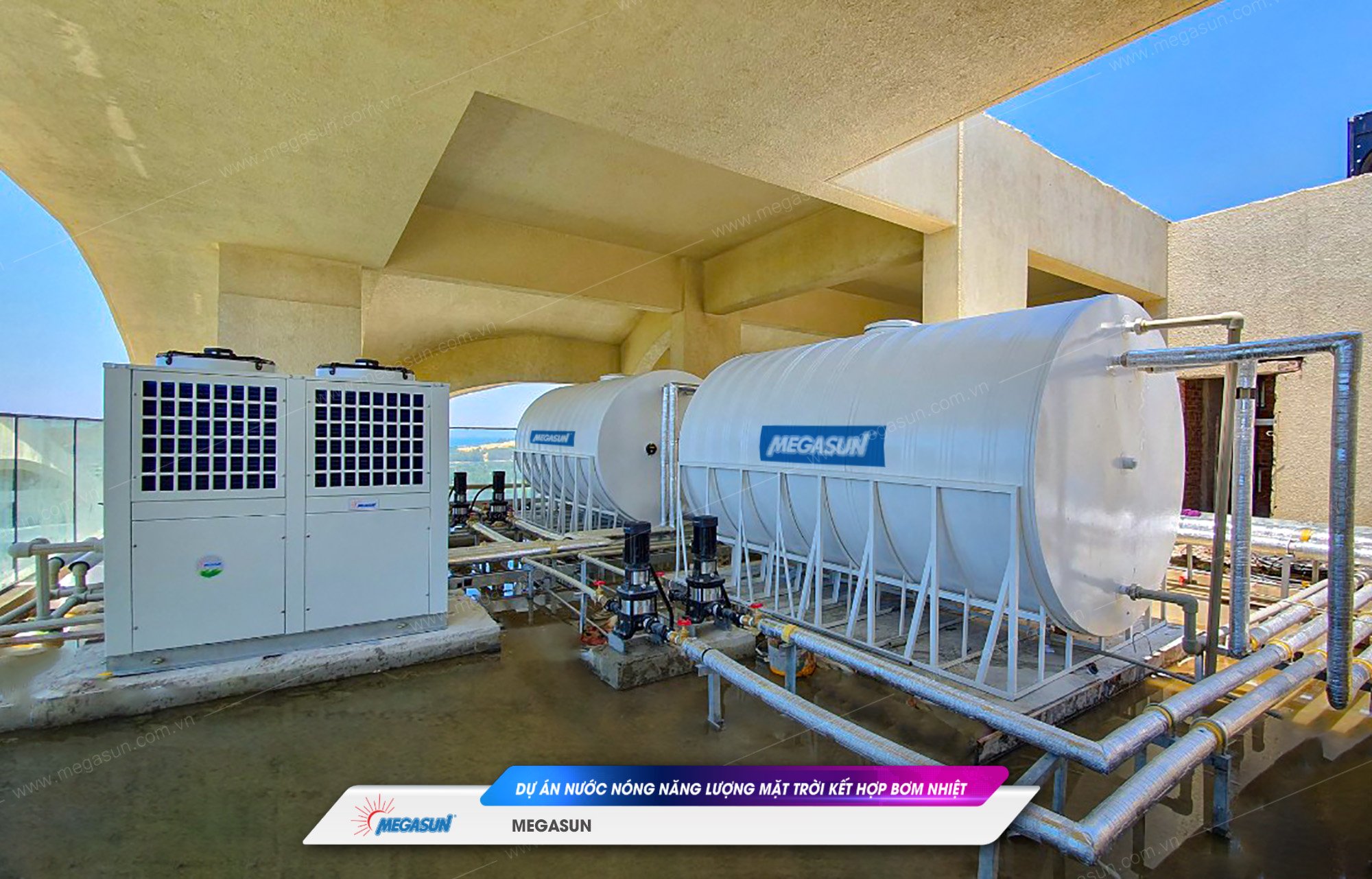 Hệ thống nước nóng bơm nhiệt Megasun : 12 bơm nhiệt MGS-30HP, 4 bơm nhiệt MGS-18HP, 11 bồn bảo ôn